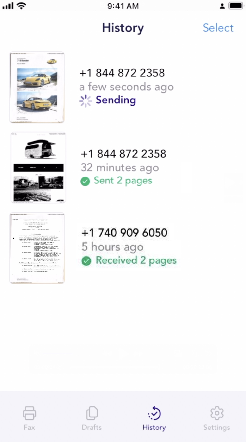 - If a user has an exclusive fax number to receive faxes, the History section is where all received faxes will be displayed.
