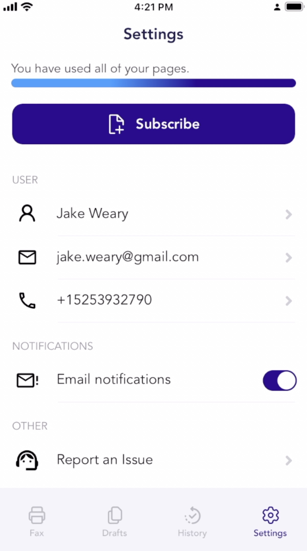 Yes, kindly contact us to erase all drafts and faxes via the "Report an Issue" feature in the Settings section. However, your user account and any subscription history will remain intact.